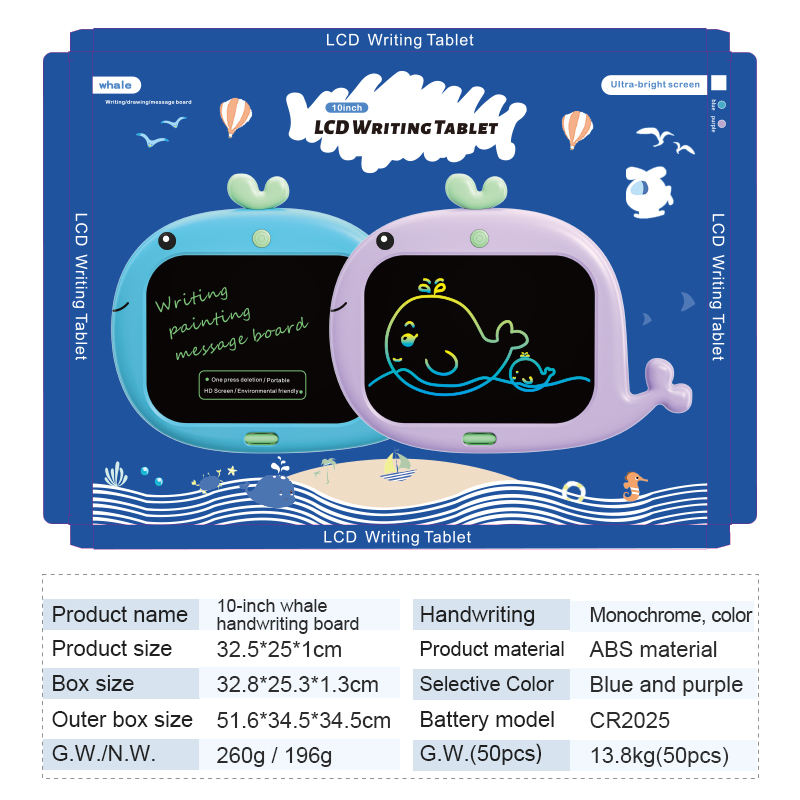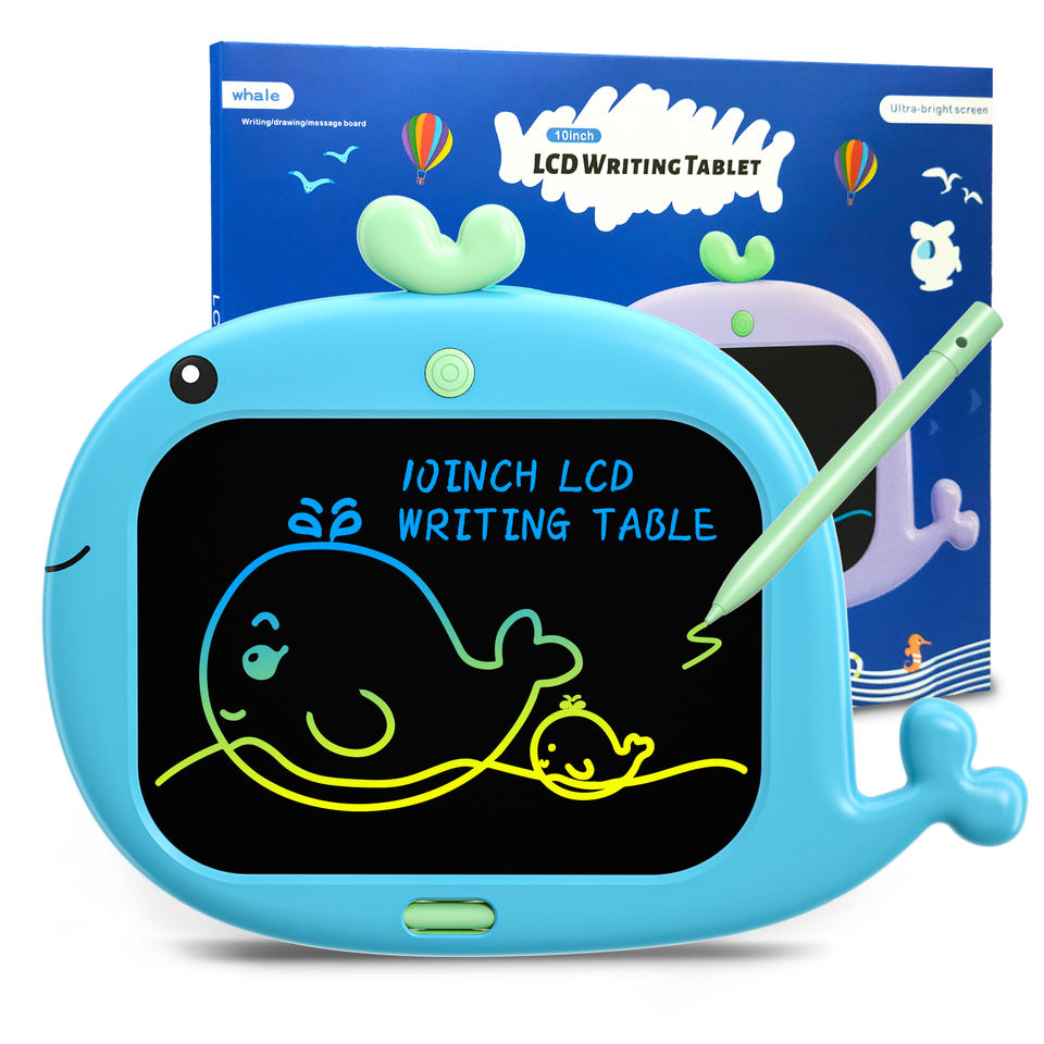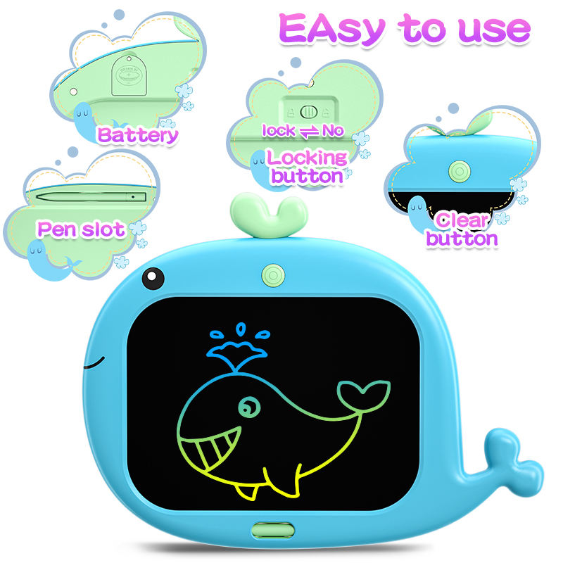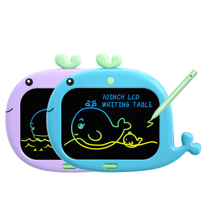 Tableta de escritura LCD de dibujos animados electrónicos educativos al por mayor tableta de dibujo de 10 pulgadas tablero de garabatos ballena juguete para niños