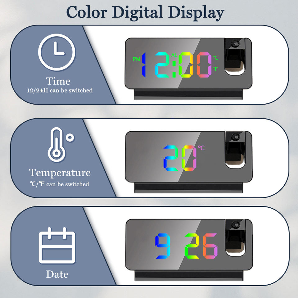 Reloj Despertador Digital LED con Rotación de 180°, USB, Electrónico, para Dormitorio, Sala de Estar, Escritorio, Venta al Por Mayor