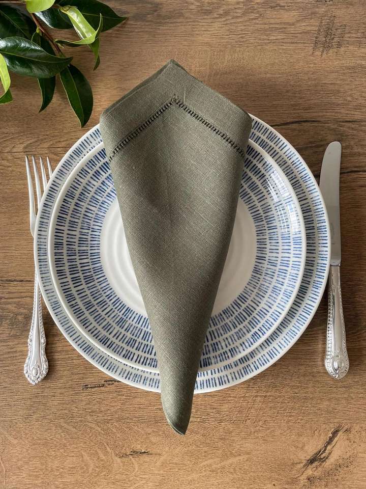 Venta al por mayor elegante cuadrado de lino servilletas Hemstitch hecho a mano suave paño lavable para comedor, boda y fiesta