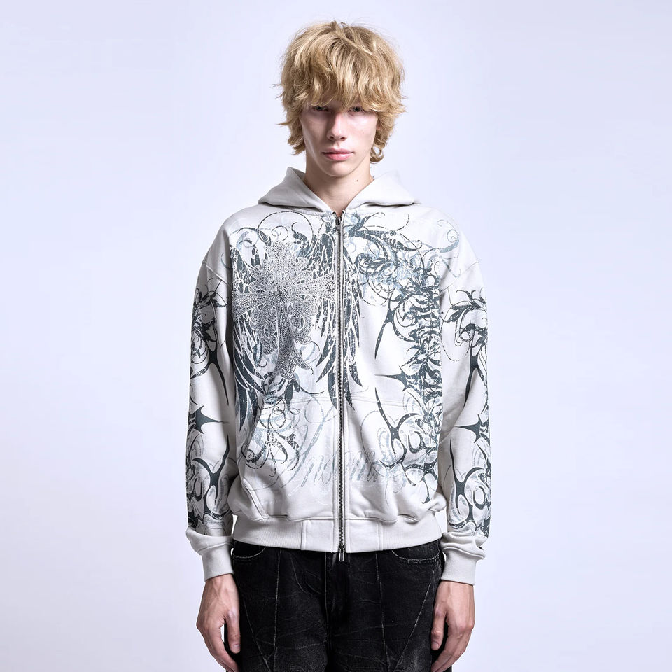 Sudaderas con capucha para hombre, bordadas, de invierno, con pedrería, con lavado ácido, desgastadas, vintage, con cremallera, oversize, estilo streetwear, venta al por mayor, suministro a granel
