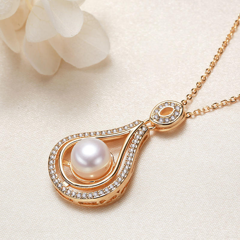 Collar de Oro Estilo Étnico al por Mayor con Colgante de Perla de Agua Dulce, Suministros para Puestos de Niñas, Colgantes y Dijes de Diamantes, Joyería de Zhuji
