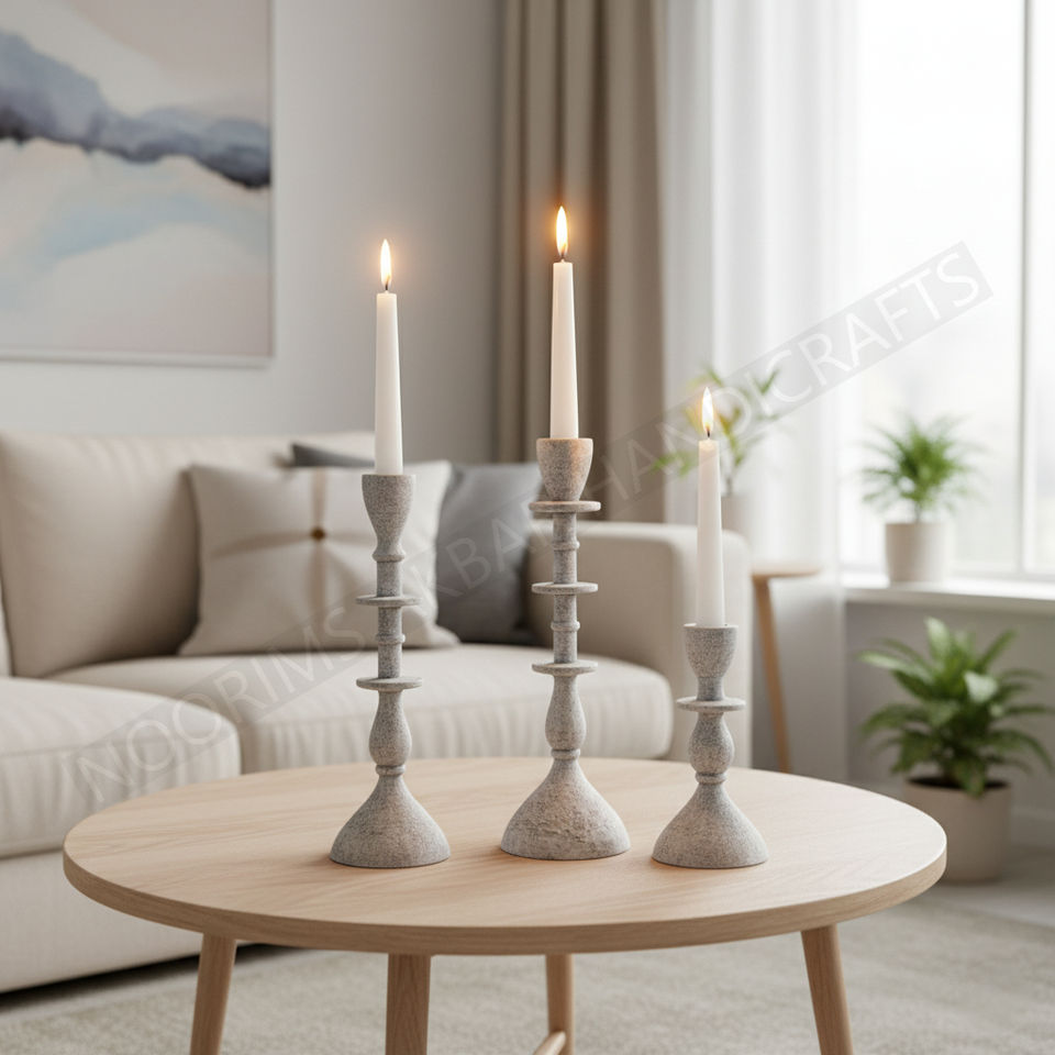 Venta al por mayor de candelabros de diseño de piedra de metal blanco y negro simples europeos candelabro adornos para Decoración