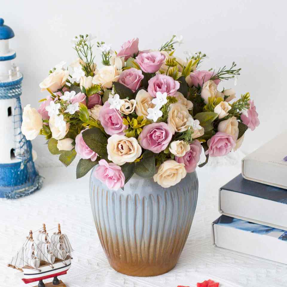 Flor de simulación de boda europea al por mayor nuevo 5 rosas de concubina imperial ramo de gama alta decoración del hogar Floricultura