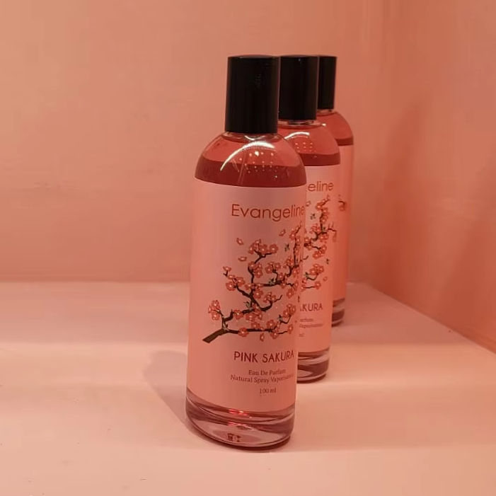Venta al por mayor Evangeline EDP Sakura Pink 100mL Liquid Body Spray Colonia con fragancia Body Mist Bottle Indonesia