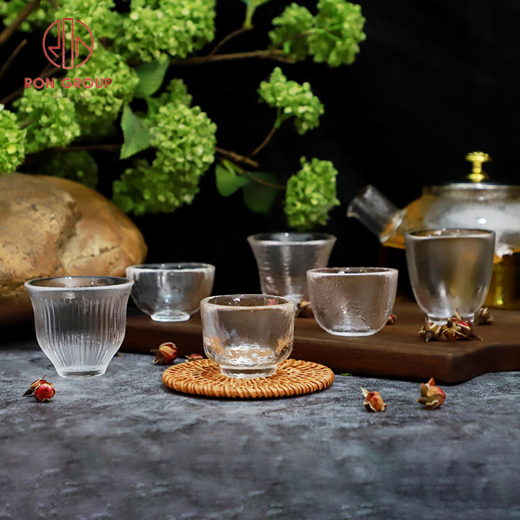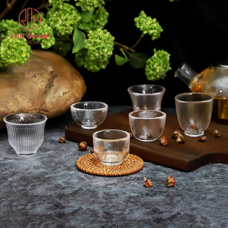 Venta al por mayor, evento, restaurante, varios patrones, vidrio transparente, vasos pequeños, juegos de Kung Fu chino, tazas de té