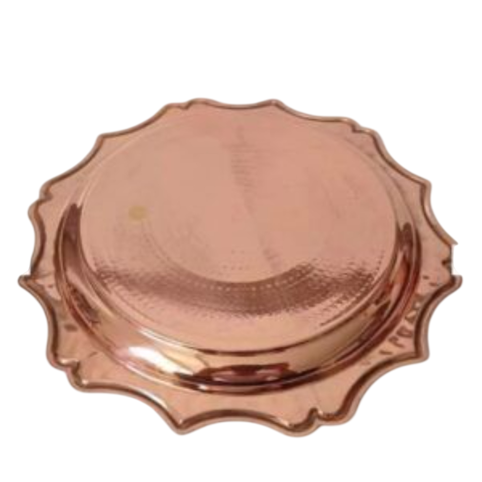 Bandeja de Servicio de Cobre Martillado a Mano Vintage con Borde Dorado para Decoración de Mesa de Eventos, con Asas de Latón, para Bodas, Hogar y Hotel
