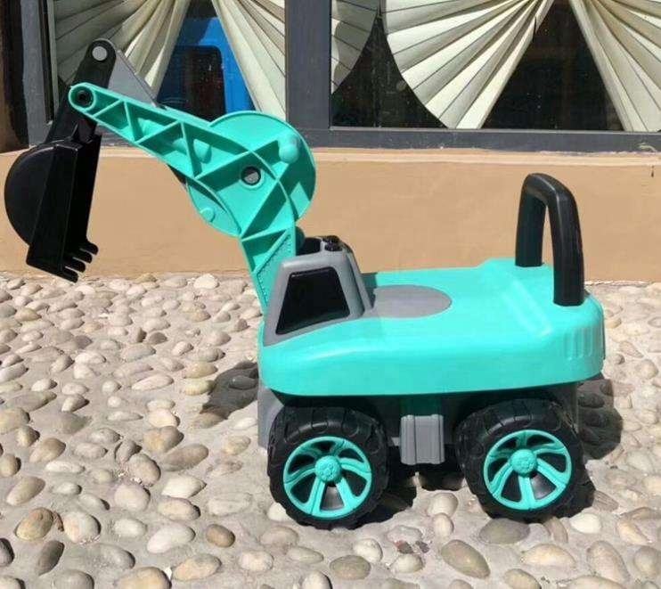 Coche de juguete para montar con diseño de excavadora al por mayor para bebés grandes y niños pequeños, ruedas pequeñas de dos plazas, gancho giratorio económico para