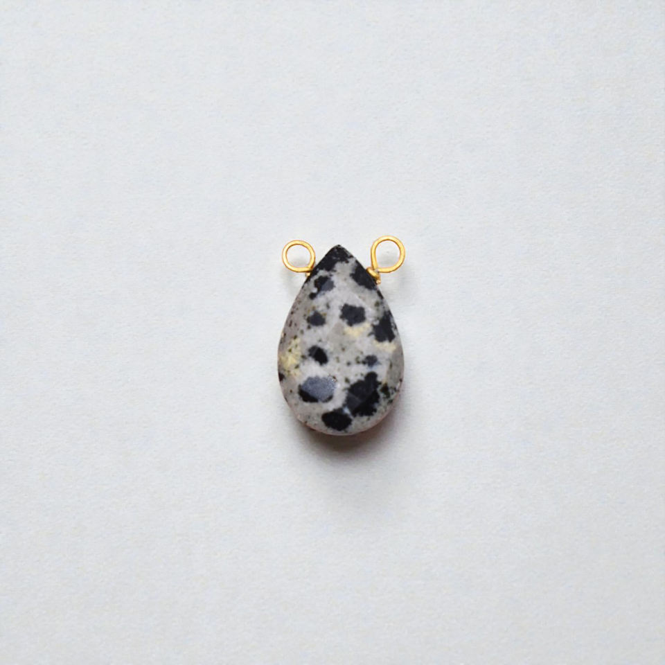 Colgante de Cristal Facetado Color Jaspe Dálmata en Forma de Lágrima con Baño de Oro para Fabricación de Joyería DIY, Collares y Pendientes