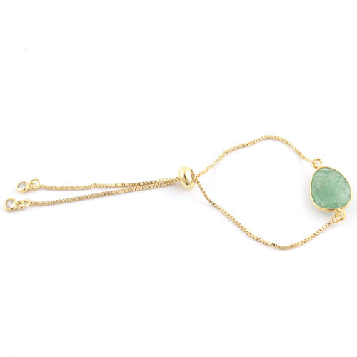 Pulsera de cadena de caja chapada en oro ajustable de fábrica al por mayor conjunto de bisel CZ de cuarzo de fresa verde natural con regalo de diamante