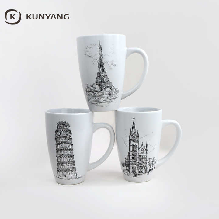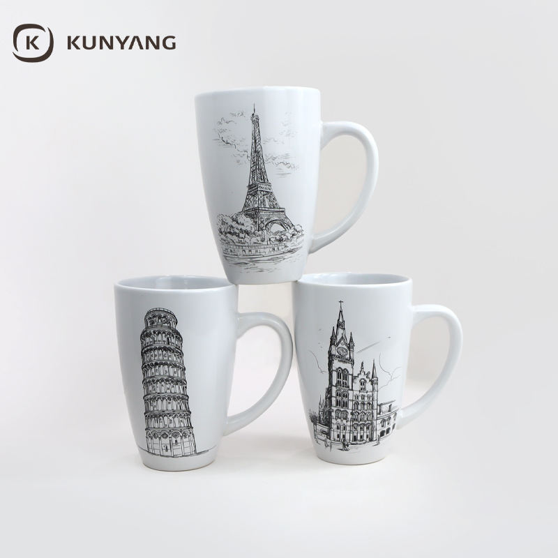 Tazas de Cerámica Personalizadas de Fábrica al por Mayor, Tazas Minimalistas de 17 oz, Taza Simple Blanca Brillante, Tazas de Café de Cerámica de Recuerdo de la Ciudad