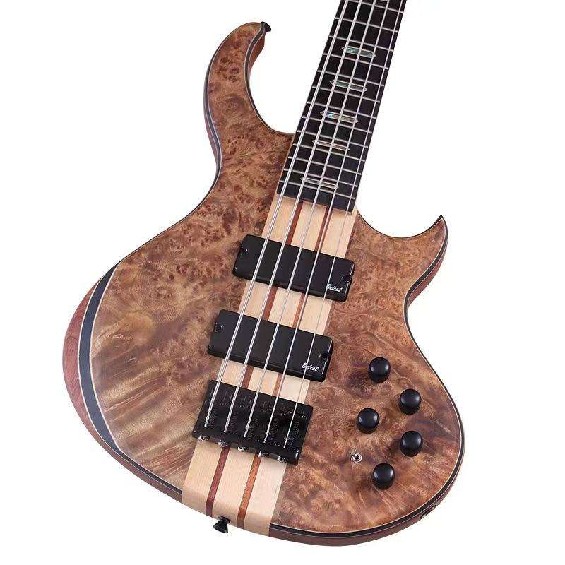 Bajo Eléctrico de 5 Cuerdas de Alta Calidad Directo de Fábrica al Por Mayor, Hecho de Caoba, Mástil de Una Pieza, Bajo Eléctrico con Interruptor de 5 Posiciones