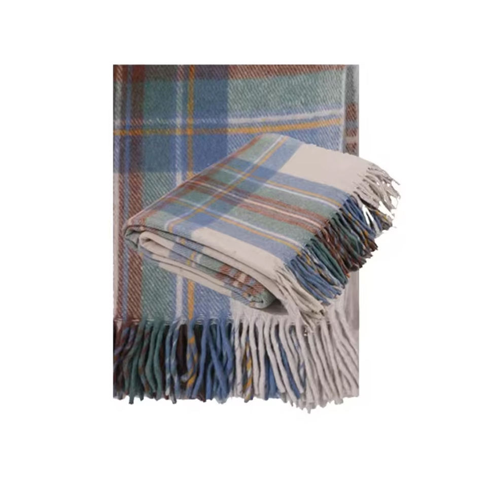 Manta azul silenciada Stewart de tartán reciclado de alta calidad directa de fábrica al por mayor estilo tejido inspiración mexicana