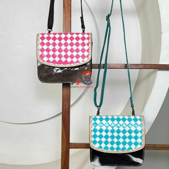Product name:Hand Tooled Checkered Leather Crossbody Bag