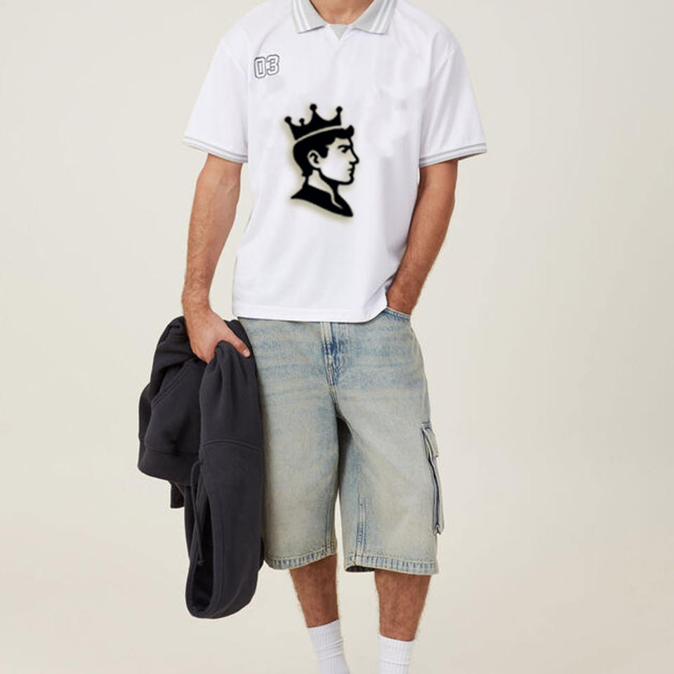 Camiseta de fútbol con estampado de líder acanalado a máquina plana de fábrica al por mayor camiseta de fútbol de hombre impresa por sublimación Digital personalizada