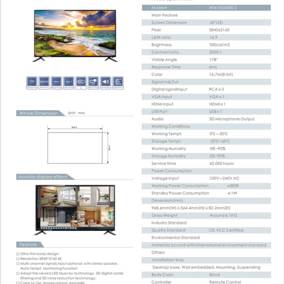 Tamaño del panel:43" LED de pantalla TFT