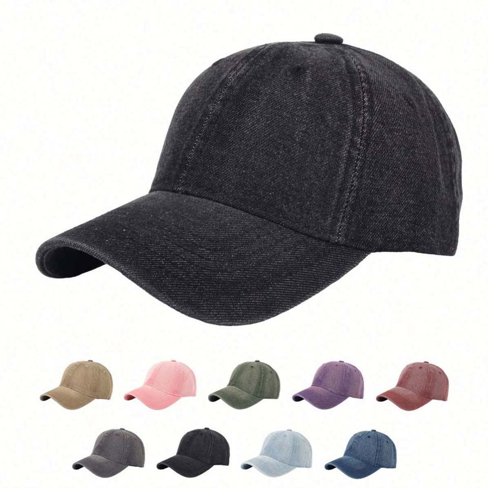 Gorras de Béisbol de Mezclilla Lavada Personalizadas al por Mayor de Fábrica OEM, Gorra de Jean Lisa sin Estructura de 6 Paneles