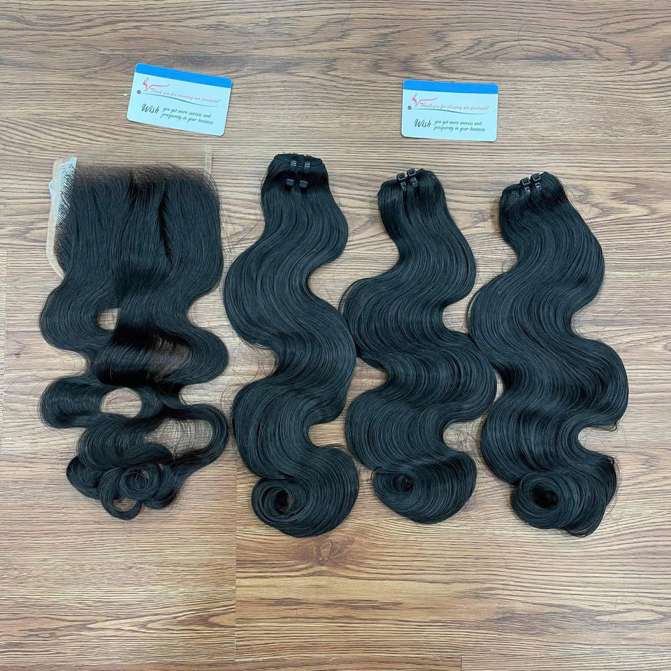 Venta al por mayor precio de fábrica cuerpo ondulado trama pelo de Color negro 100% extensiones de cabello vietnamita de alta calidad