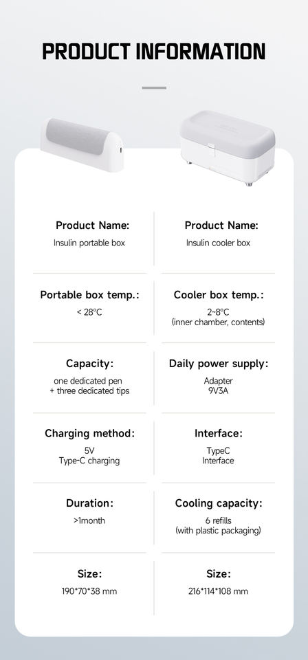 Capacidad del refrigerador:Pluma de inyección de insulina + 3 niddles