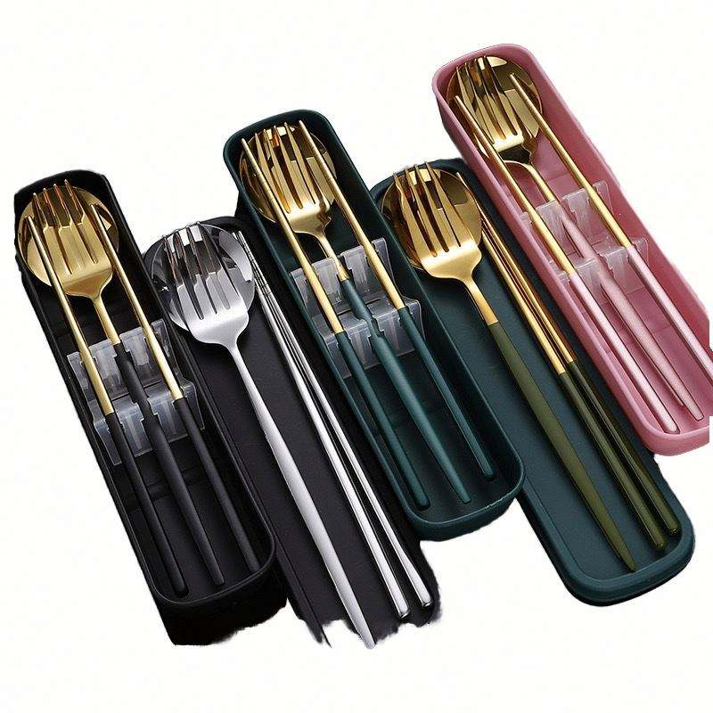 Juego de Cubiertos Portátil de Acero Inoxidable, Precio de Fábrica al por Mayor, Incluye Cuchillo, Tenedor y Cuchara, Juego de Tres Piezas de Metal