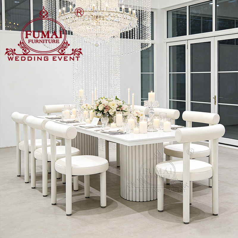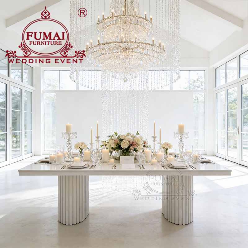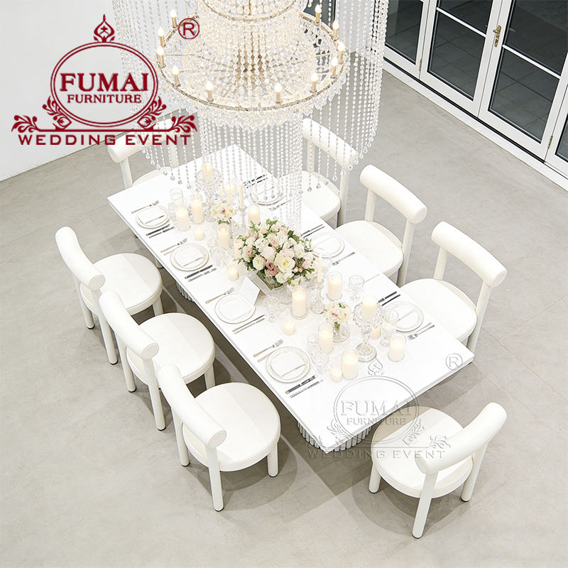 Venta al por mayor precio de fábrica de acero inoxidable Rectangular Mdf comedor Mesa nupcial Mesas de banquetes para eventos de boda para la venta