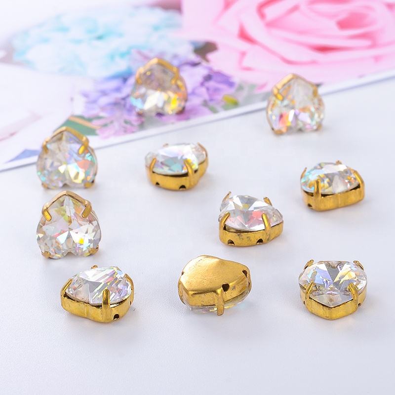 Venta al por mayor de diamantes de imitación de lujo en forma de corazón de diamantes de imitación para coser en la ropa DIY bolsas de Ropa Accesorios para zapatos
