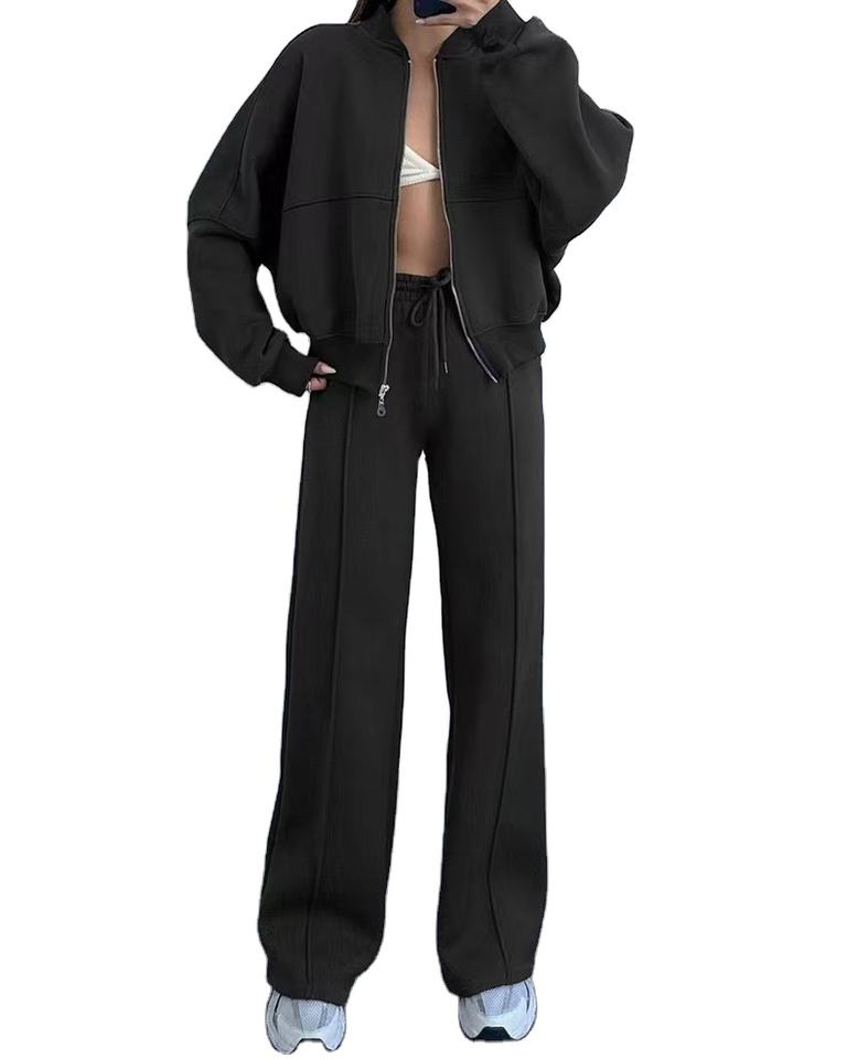 Venta al por mayor de moda logotipo personalizado de peso pesado de las mujeres chándal conjunto de 2 piezas con cremallera completa Sudadera con capucha chaqueta pantalón de chándal conjunto 2026