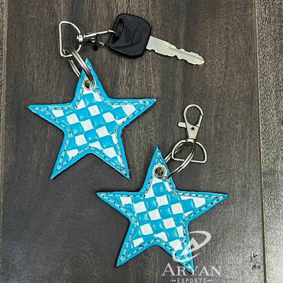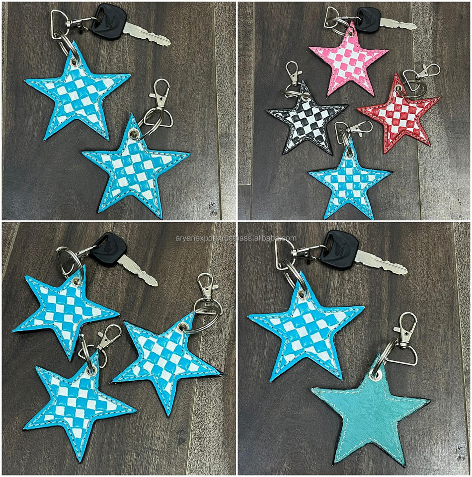 Nombre del producto:Llavero de cuero a cuadros, trabajado a mano.