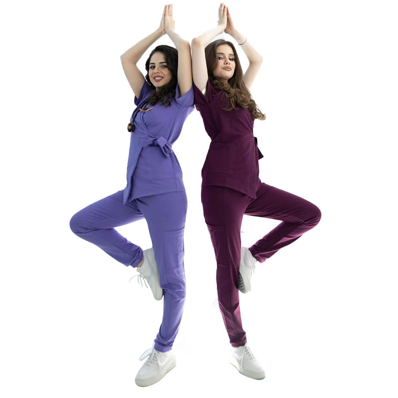 Venta al por mayor de uniformes de Enfermería de moda de manga corta Durable elástico Srubs conjunto de uniforme médico de enfermera para mujer