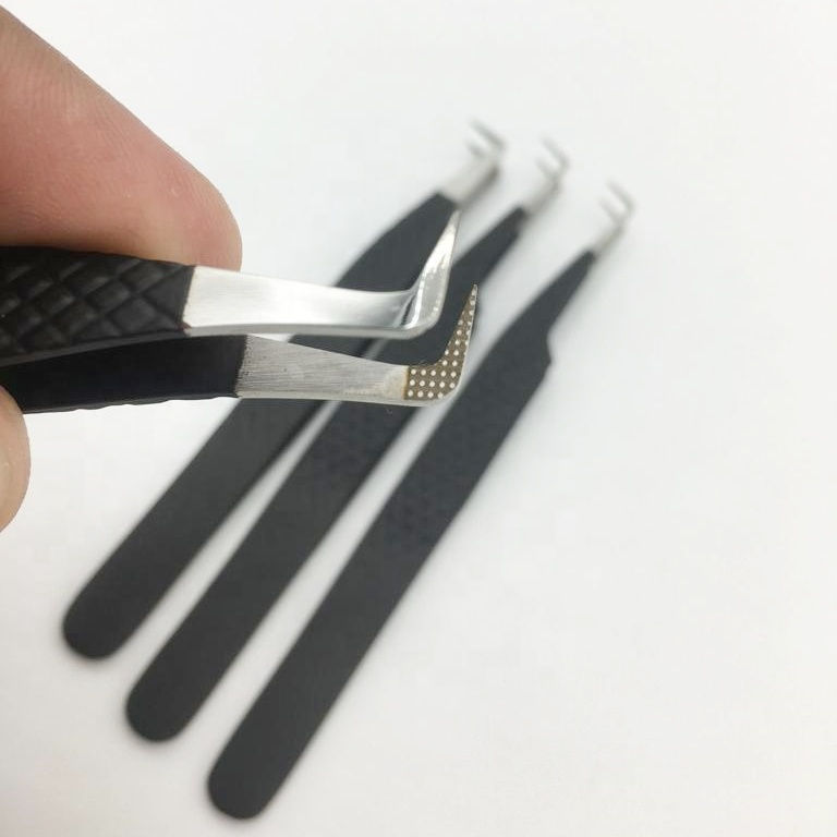 Venta al por mayor de pinzas de punta de fibra, pinzas de ventilador de volumen, pinzas de extensión de pestañas de punta de fibra, logotipo de etiqueta privada personalizado