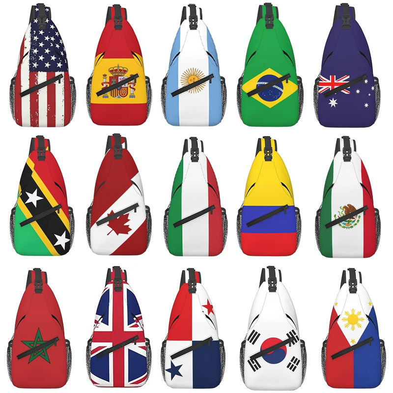 Mochila Bandolera con Diseño de Bandera al por Mayor, Bolso Cruzado de un Solo Hombro para Viajes, Deportes, Aficionados al Fútbol, Uso Diario