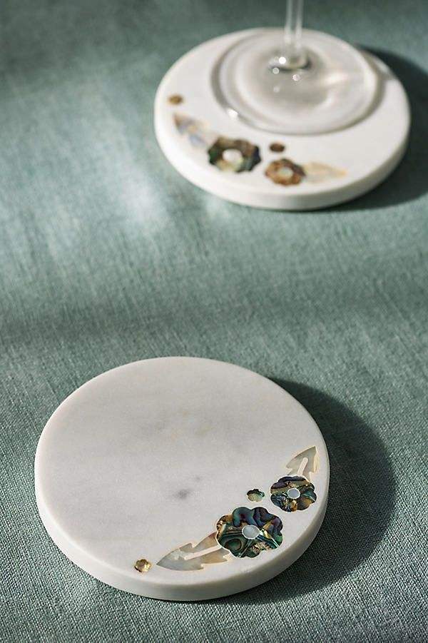 Venta al por mayor de posavasos de mármol con incrustaciones florales, posavasos de bebidas hechos a mano con incrustaciones de nácar, proveedor de Decoración de mesa de lujo