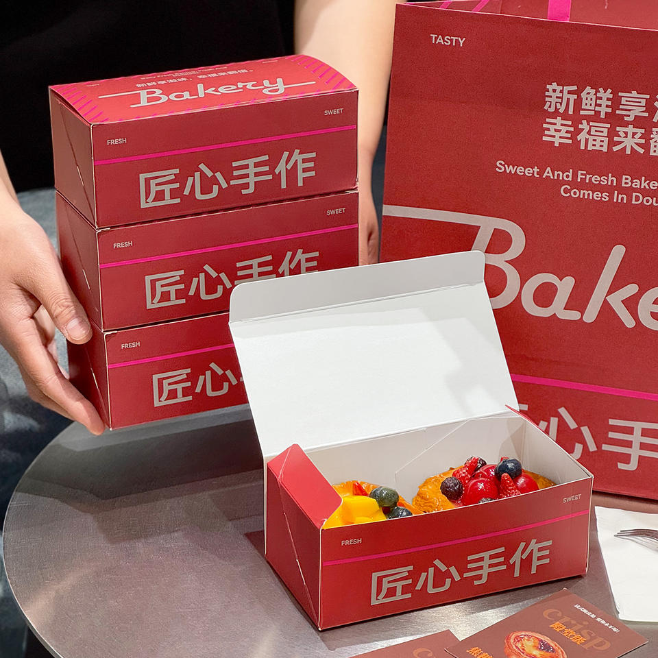 Cajas de Papel para Empacar Alimentos al por Mayor, Cajas de Papel Rojas Fáciles de Plegar para Galletas, Donas, Pasteles, Bizcochos, Dulces y Bocadillos