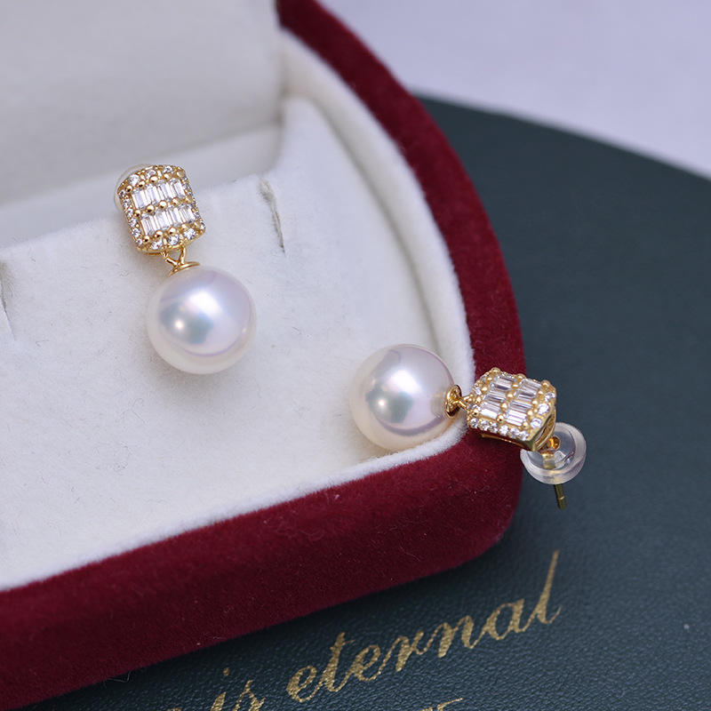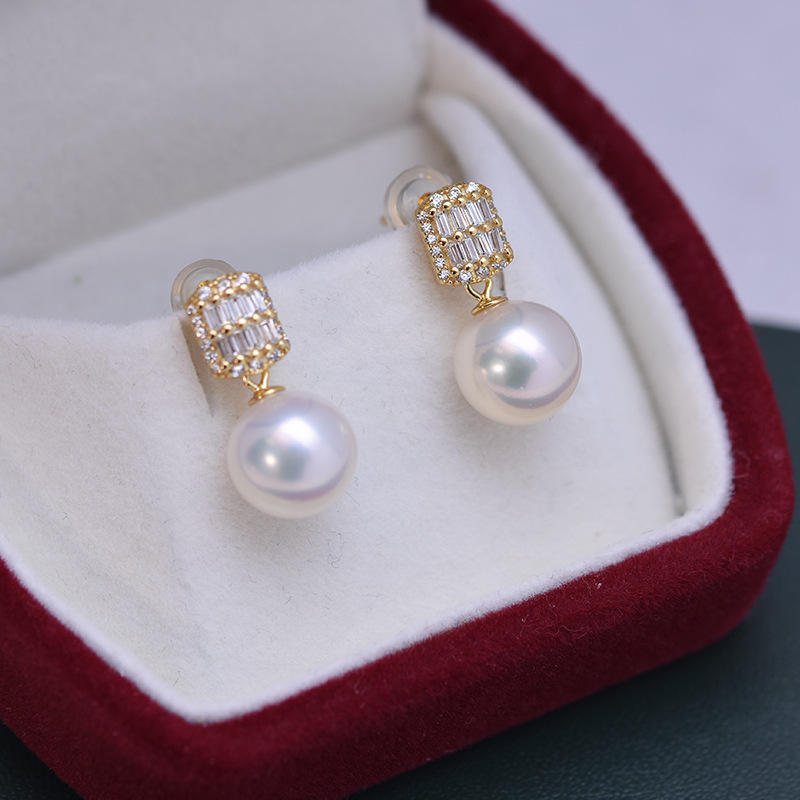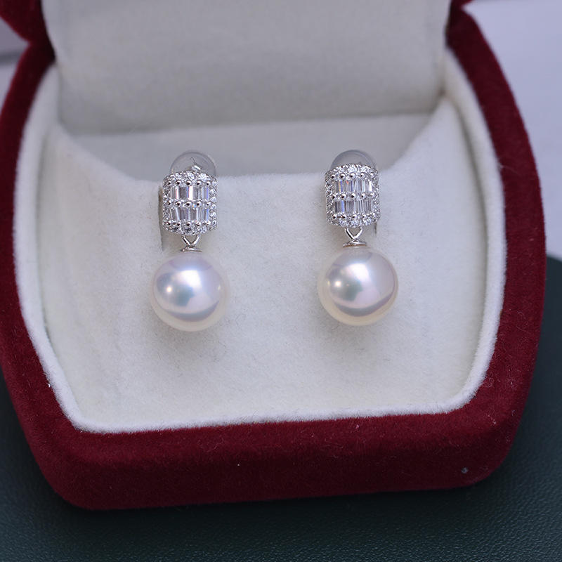 Pendientes de Perlas Redondas Blancas de Agua Dulce al por Mayor de 9-10 mm, Plata S925 con Luz Intensa y Pequeñas Imperfecciones para Princesa