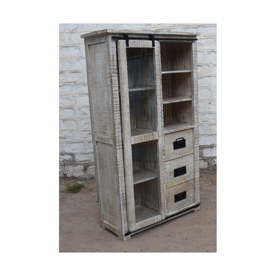 Product Name:Iron/wooden 3 Drawer Sliding Glass Door Almirah