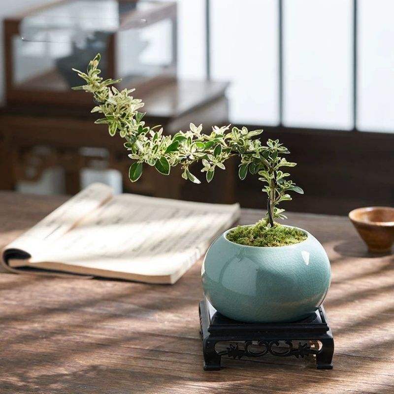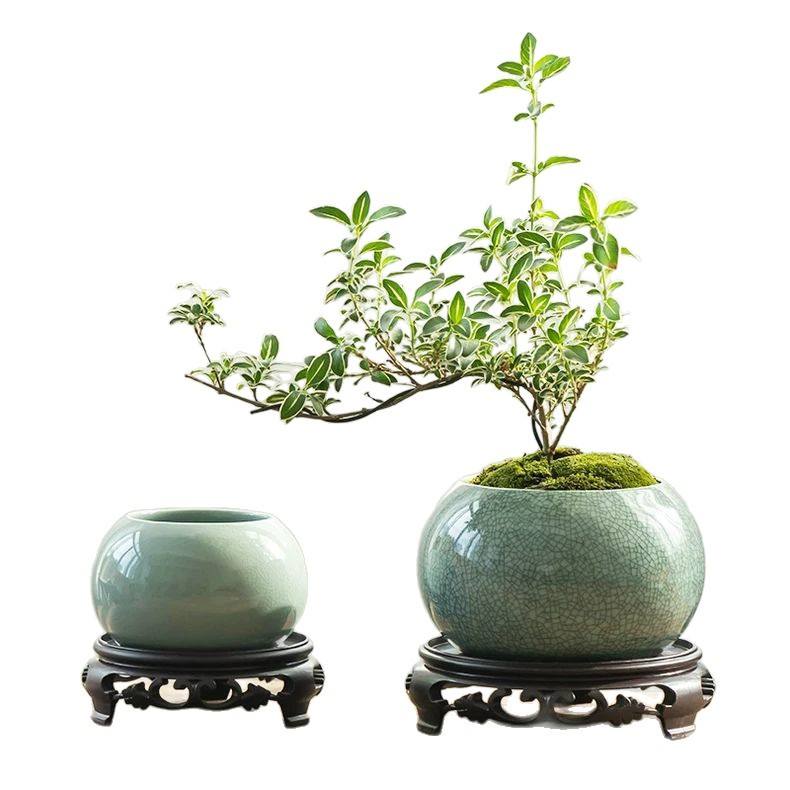 Juego de Macetas de Cerámica Ge Kiln al por Mayor, Macetas Vintage con Esmalte Agrietado para Bonsái, Musgo, Jardín, Suculentas, Decoración del Hogar