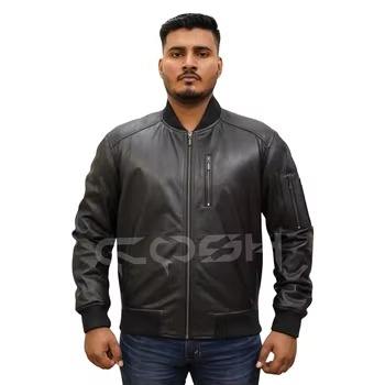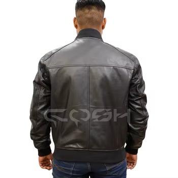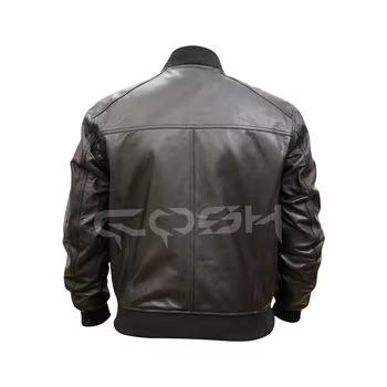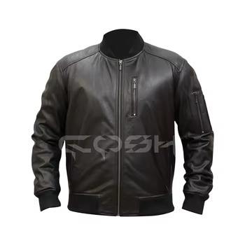 Chaqueta de Cuero Genuino de Piel de Vacuno al por Mayor para Motociclistas, con Hombros/Ambos Brazos Acolchados, Cuello Alto y Bolsillos con Cremallera