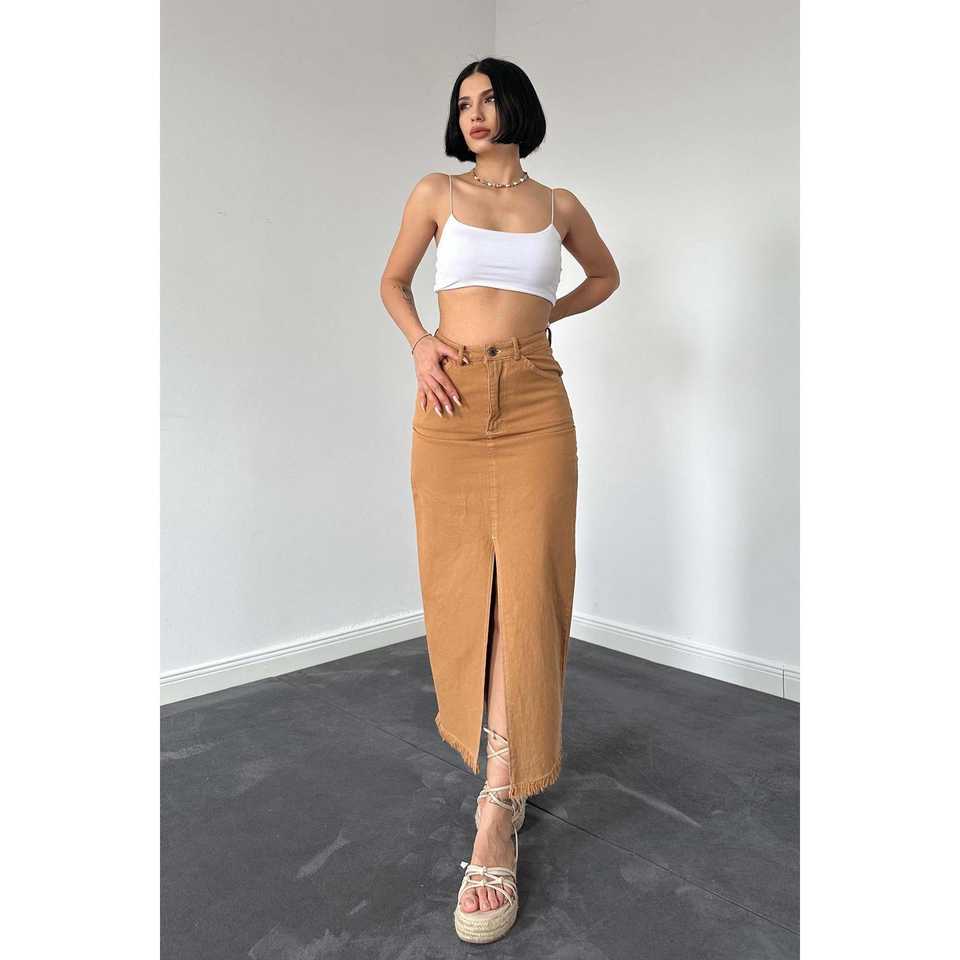 Falda de Cuero Genuino al por Mayor, Estilo Gabardina Camel Teñida, con Borlas, Tallas Grandes, Bordada, Estampado Animal, Volantes, Estilo Algodón Liso