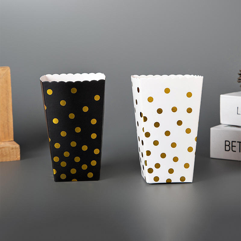 Caja de Cartón Biodegradable, Impermeable y Portátil para Palomitas de Maíz, Comida Rápida, Regalos y Pequeños Negocios, Color Negro/Marfil, Venta al Por Mayor