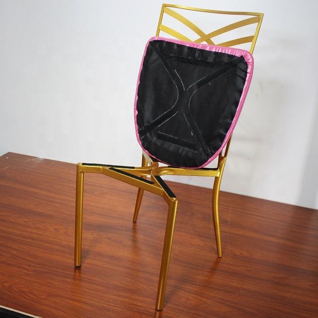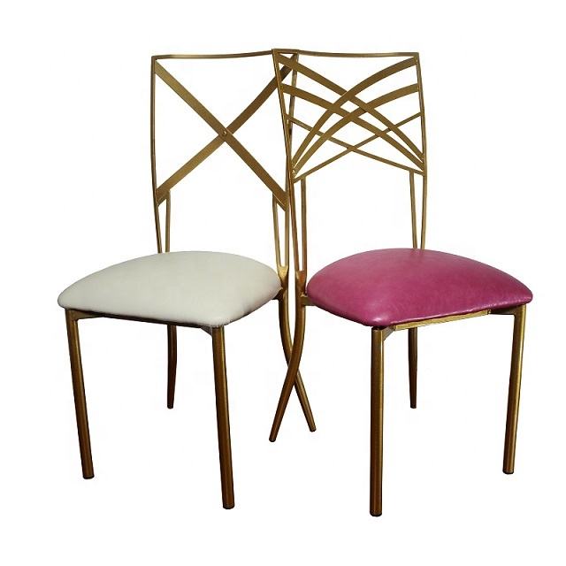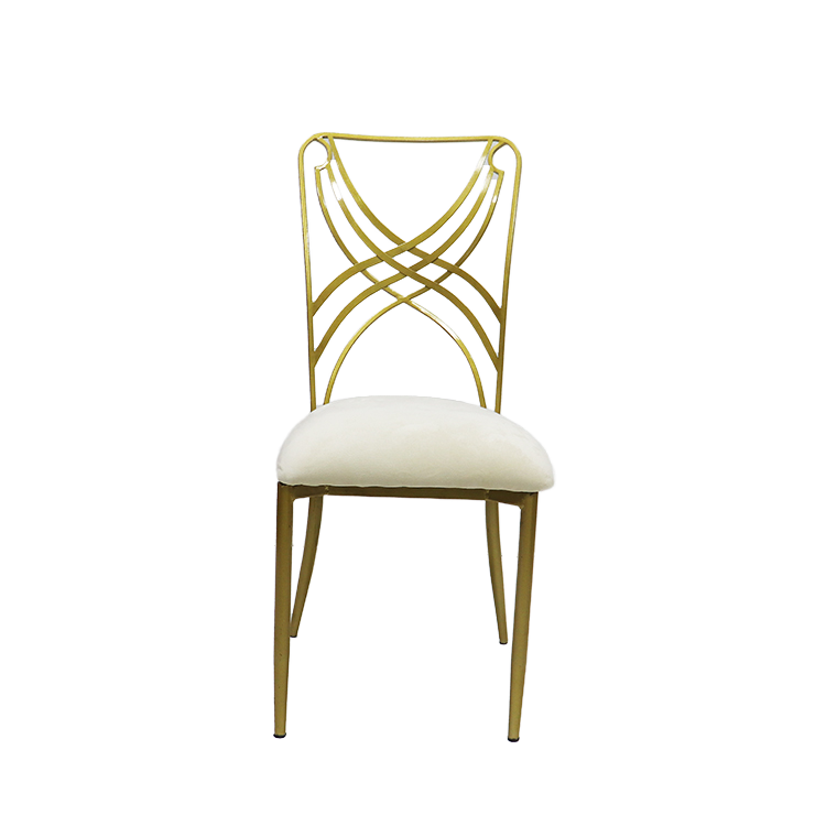 Sillas de boda con respaldo cruzado de hierro dorado al por mayor, cojín desmontable popular para hoteles, alquiler, sala de estar dorada, Hospital