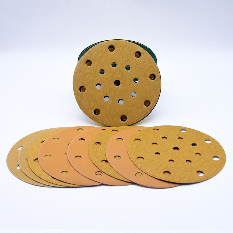 Disco de gancho y bucle morado dorado al por mayor, disco de lijado abrasivo de 6 pulgadas, papel de lija, discos de papel de lija para pulir