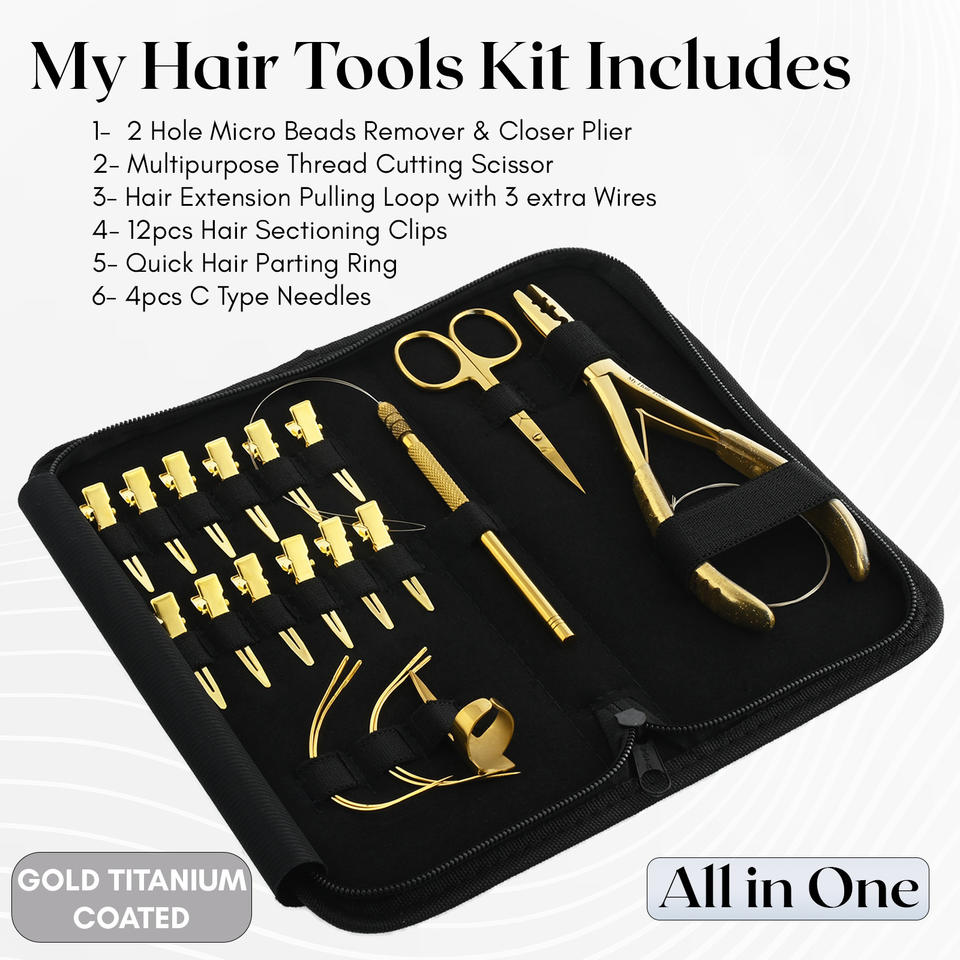 Product Name:Wholesale Gold Stainless Steel Hair Extensions Tools Kit