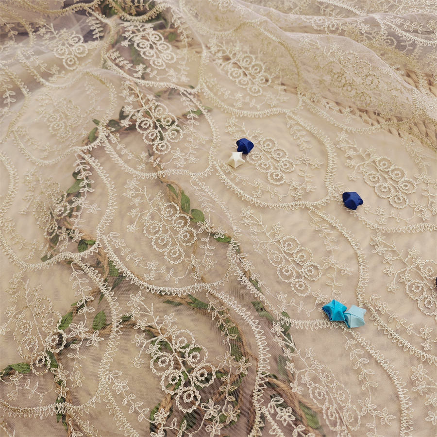 Venta al por mayor Hilo de oro Tela de rejilla de diamante Encaje bordado Tela decorativa de mujer Tela de encaje de boda Fabricantes