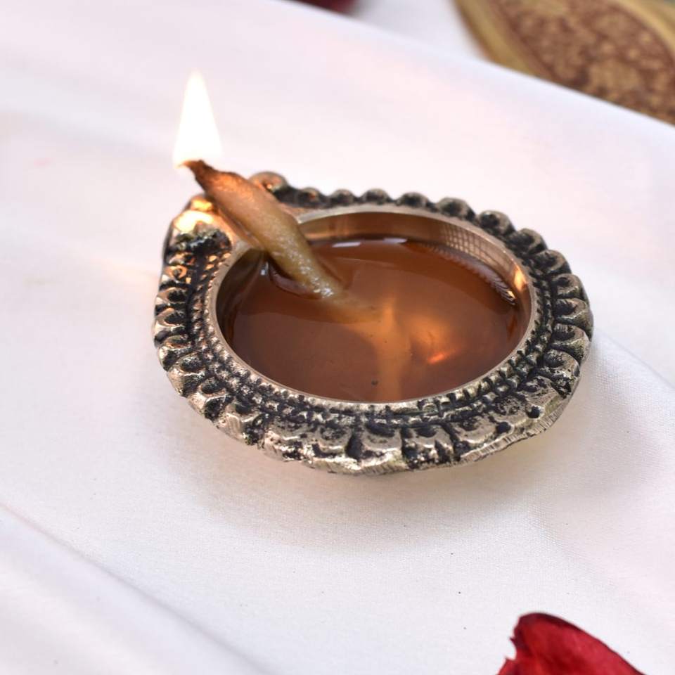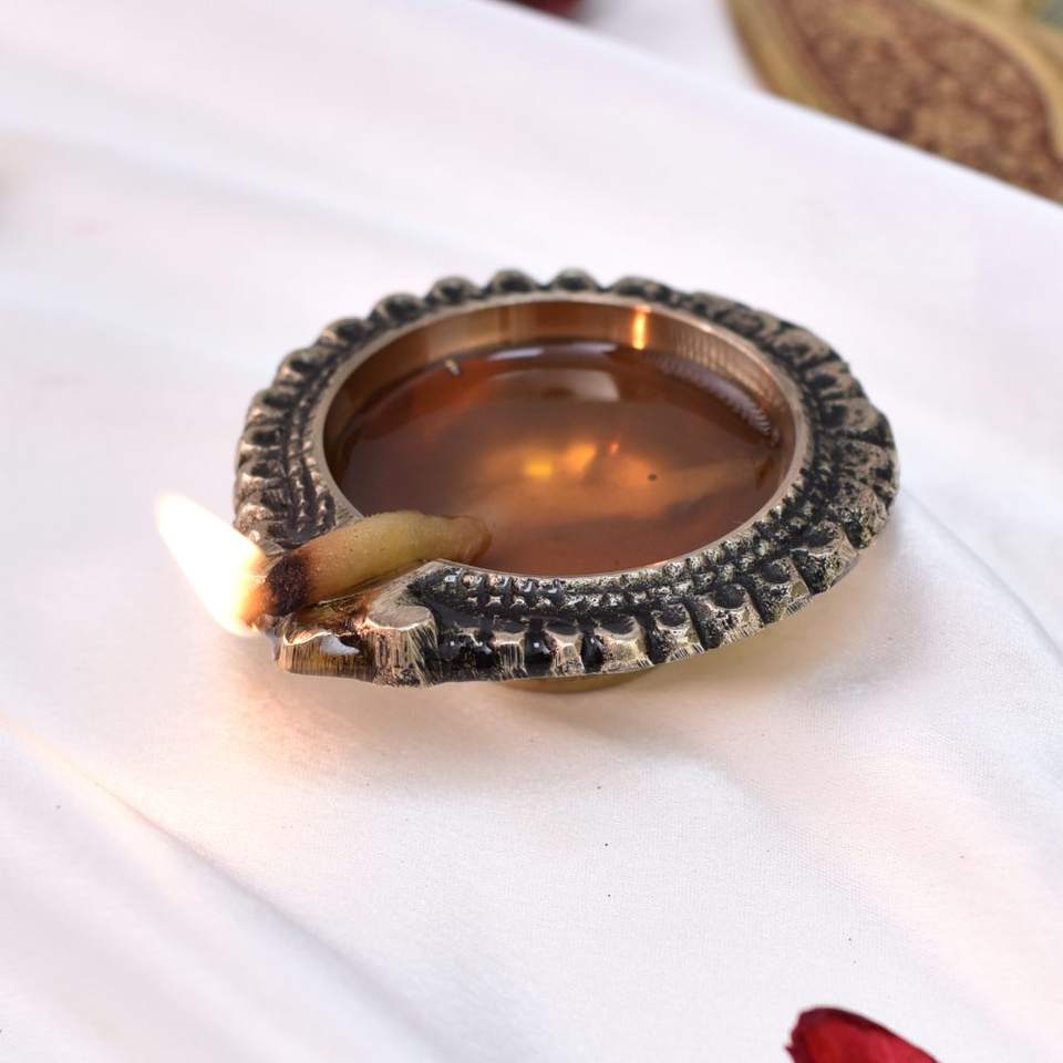Nombre del producto:Lámpara de aceite de latón redonda floral Diya