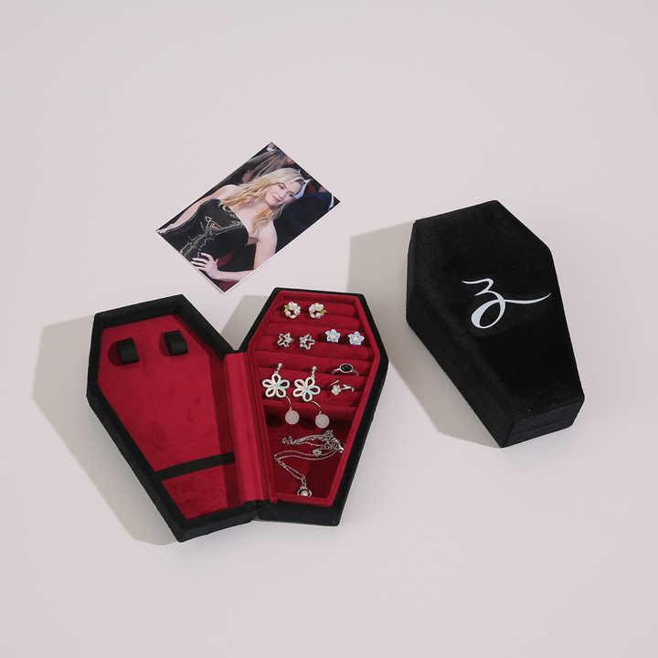 Estuche de Joyería Gótico de Terciopelo al por Mayor - Diseño de Calavera, Almacenamiento de Anillos de Viaje, Embalaje de Accesorios Góticos