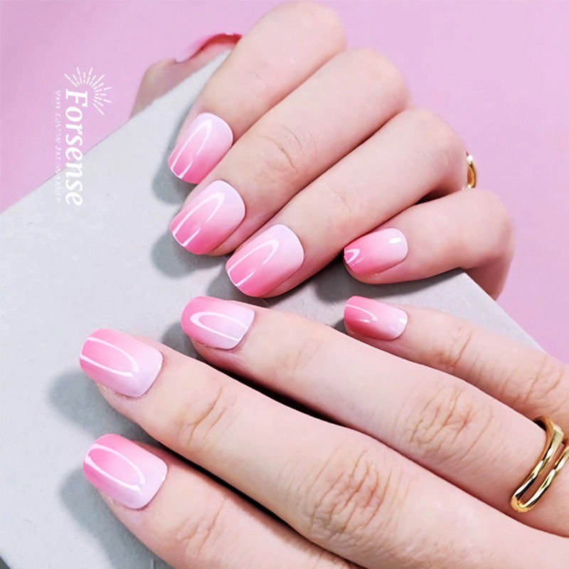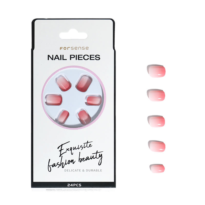 Venta al por mayor color degradado ombre prensa en las uñas elegante Rosa uñas postizas presson personalizado corto cuadrado palo en uñas acrílicas falsas 24
