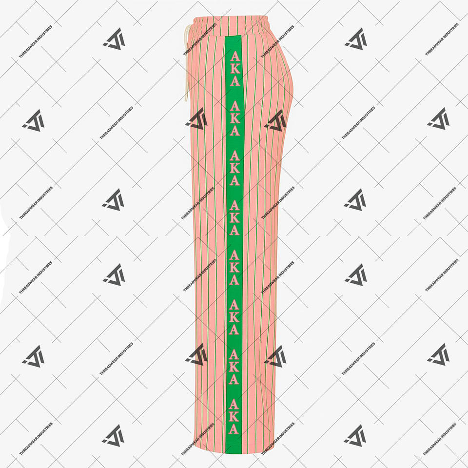 Venta al por mayor griego Alpha | Kapa | Alpha AKA Sorority Ropa Pinstripe Pantalones de chándal de pierna ancha Parafernalia griega
