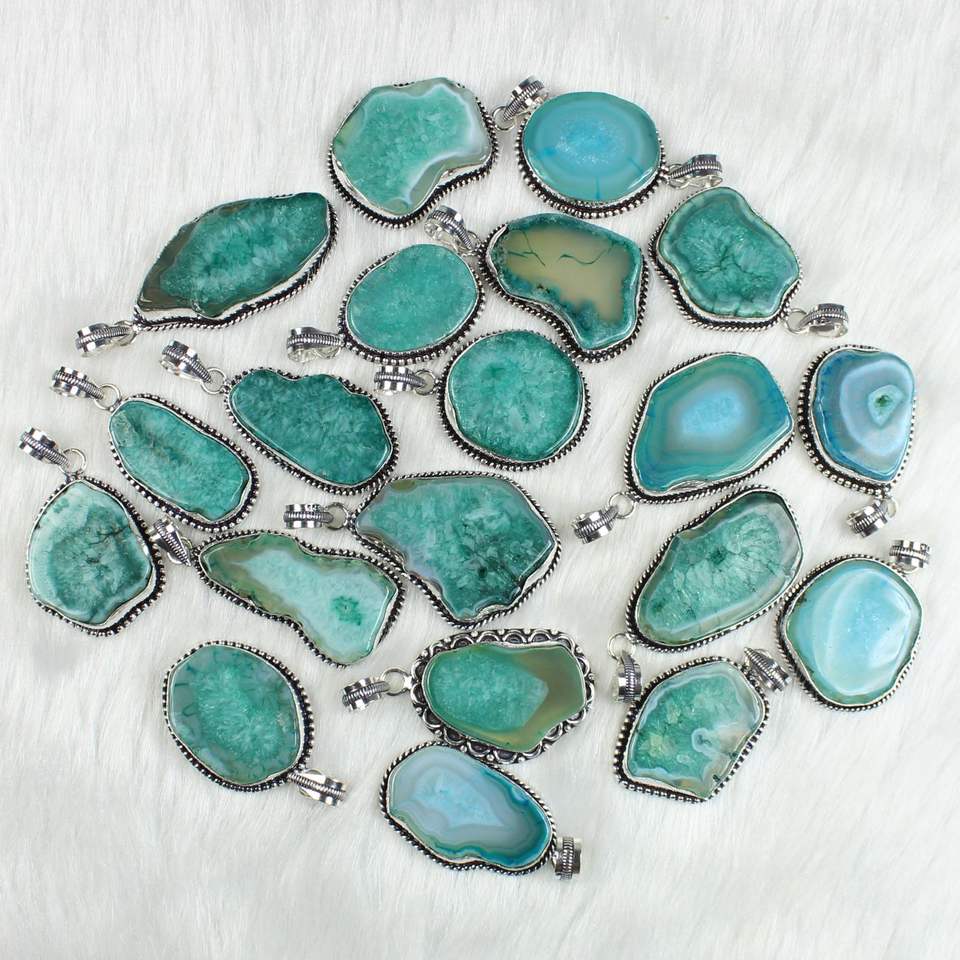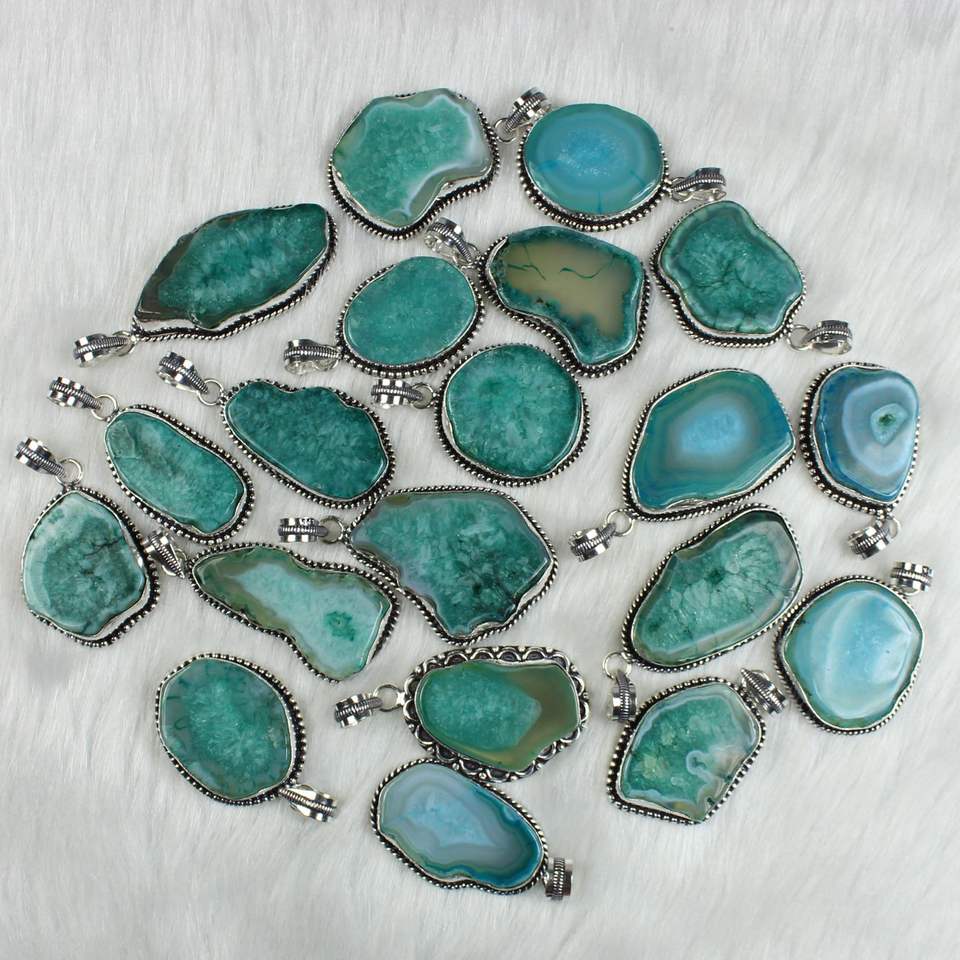 Product Name:Green Solar Quartz Slice silver plated pendants