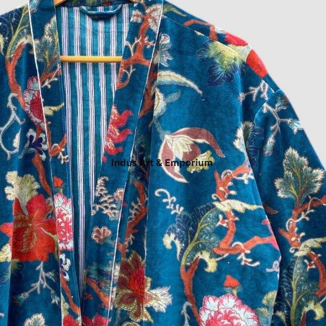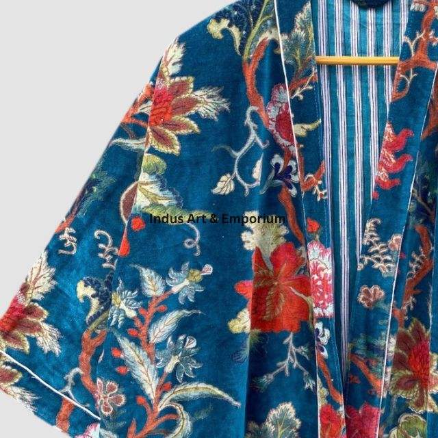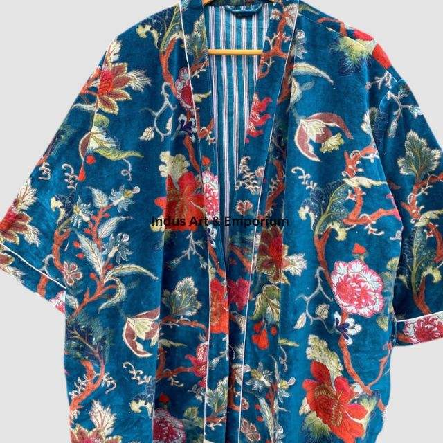 Kimono de Terciopelo de Algodón Estampado a Mano al por Mayor