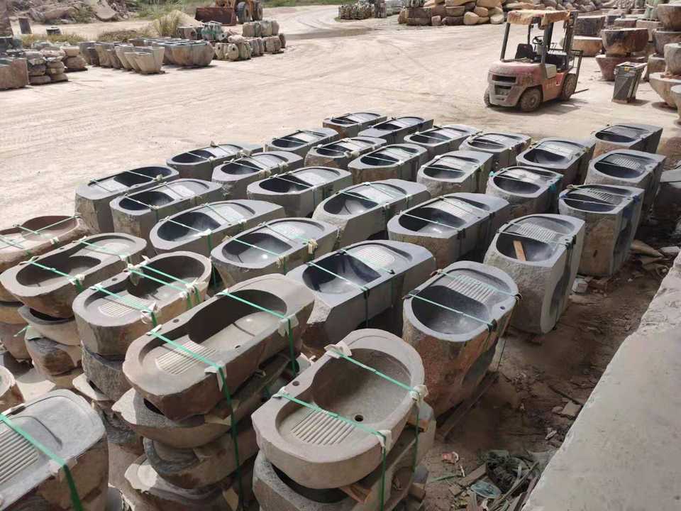 Lavabo de Piedra Natural Boulder Hecho a Mano al por Mayor para Jardín Exterior, Patio, Baño Interior
