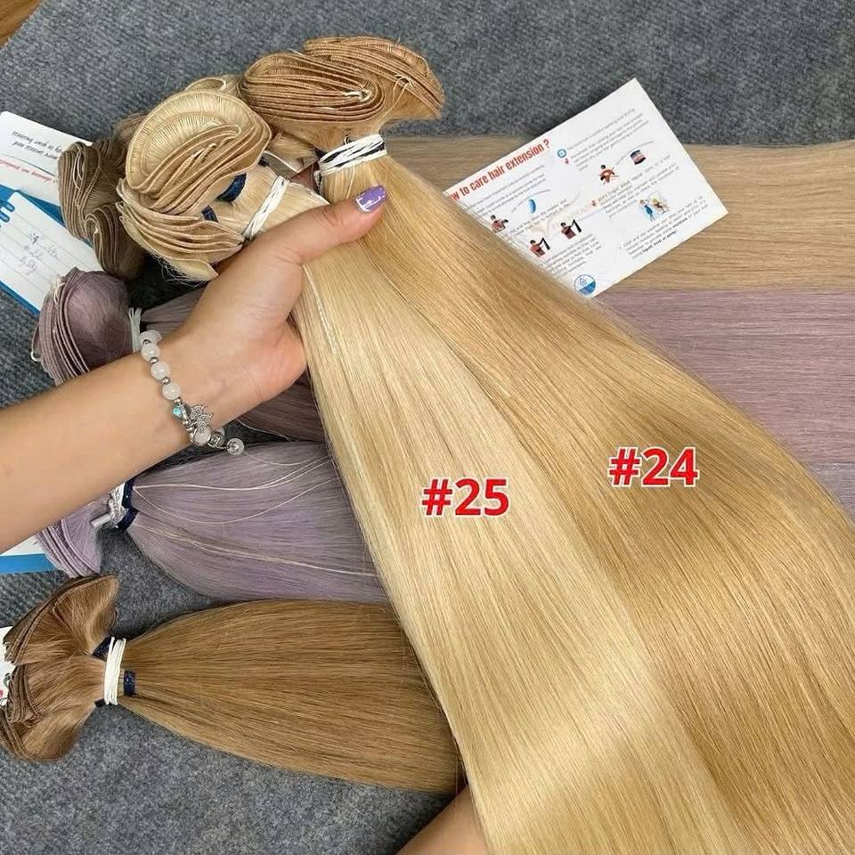Extensiones de cabello Remy de trama doble atadas a mano al por mayor cabello humano vietnamita sin desprendimiento sin enredos de color